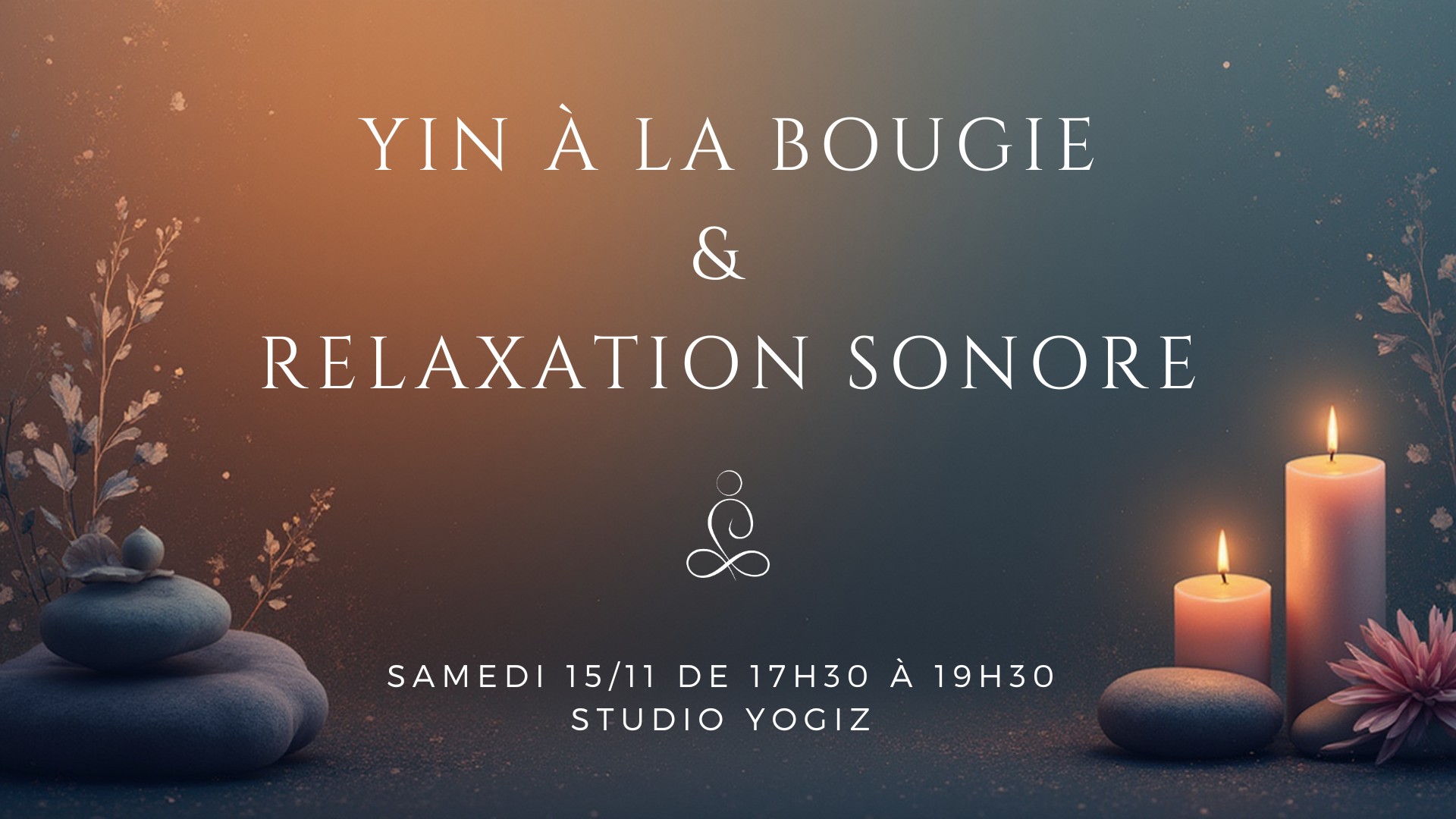 En plein cœur de l'automne, déposez-vous et profitez d'un moment cocoon à la lueur des bougies ✨️ || Au programme || 🔹 Pratique de Yin Yoga guidée par un doux fond musical et lecture de contes à la lueur des bougies 🔹 Longue relaxation sonore au son des carillons, du bol, du gong et du tambour 🔹 Et pour clôturer la séance, tisane et douceurs à partager 💕 || Quand ? || Le samedi 15 novembre de 17h30 à 19h30 || Tarif || 35€ par personne 60€ tarif duo || Où ? || Studio Yogiz, 10 rue du Bouclier à Strasbourg Attention, places limitées ! -> Inscriptions et renseignements par mail à Atelier accessible à tous. Au plaisir de partager ce moment cocoon avec vous ❤️ Chaleureusement, Caroline JAYA YOGA _________________________ Le Yin Yoga qu'est-ce que c'est ? -> Cette pratique puise ses origines dans le yoga taoïste. C'est donc un mélange subtil de philosophie indienne et chinoise. Il permet de relâcher complètement le corps et l'esprit, de travailler les tissus profonds (fascias, tendons, ligaments, articulations) en pratiquant des postures statiques le plus souvent au sol, soutenues par des accessoires (briques, couvertures, bolsters, coussins), et tenues plusieurs minutes tout en s'ouvrant aux émotions. Il diminue le stress et l'anxiété.